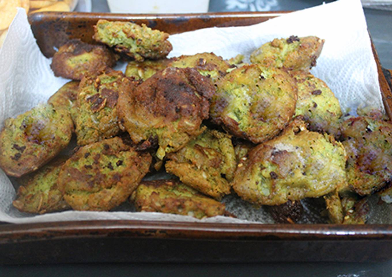 - Ponemos a calentar una sartén con abundante aceite a fuego medio. Cuando el aceite esté caliente vamos colocando la crema formando tortitas con la ayuda de una cuchara sopera.