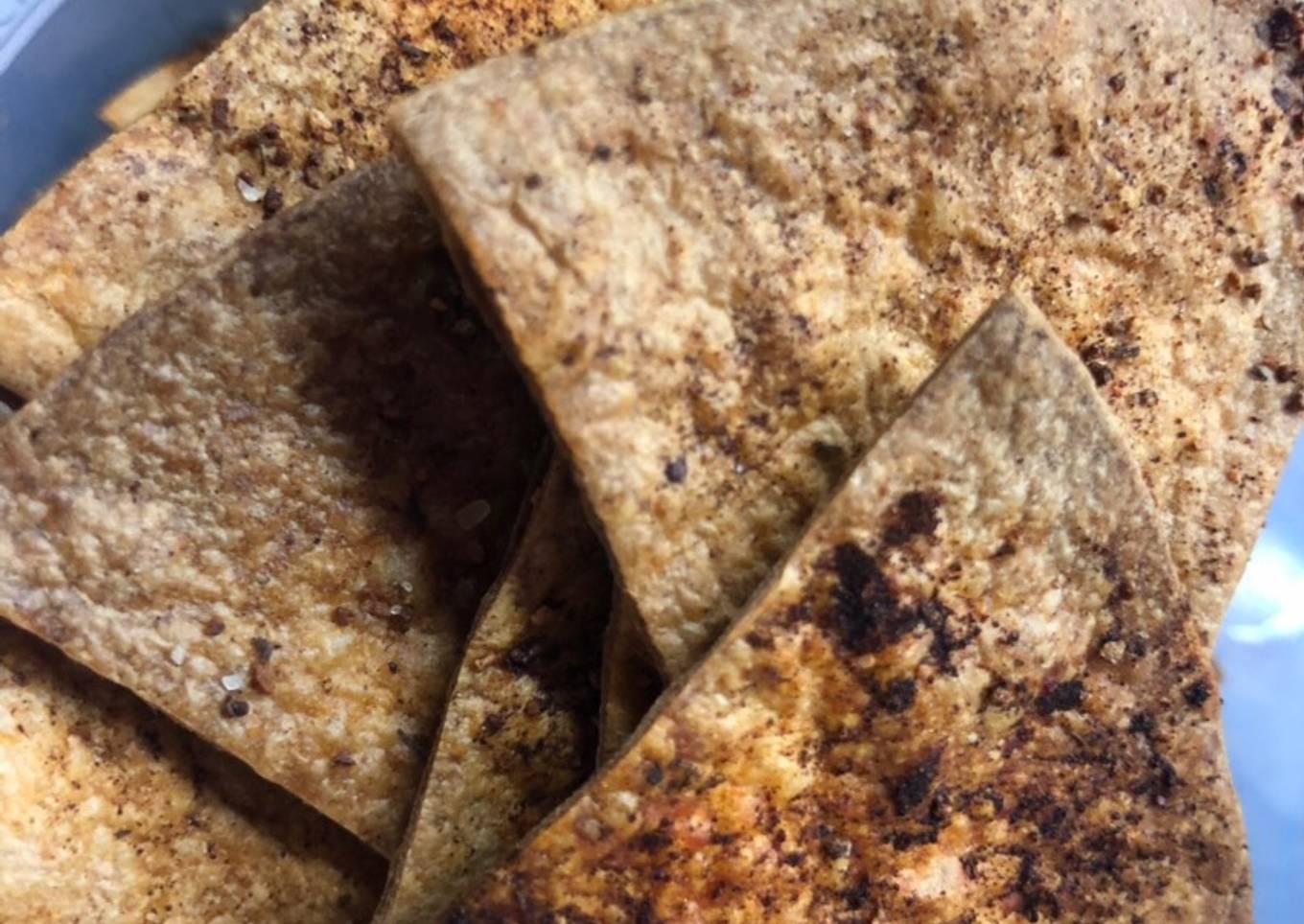 - En un vasito, ponemos las especias y mezclamos, las añadimos por encima a cada trocito de tortita.